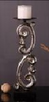 | | BESCHRIJVING | Kaarshouder | | MATERIAAL | Metaal + Glas | | AFMETINGEN | 13" x 14"(H) | | GEWICHT CA. | 1,33 kg | | AFWERKING | poeder coated ijzer in | | | antiek goud/koper/ zilver - metallic afwerking met ingelegd spiegelglas | | Bestelnummer: CANHO02 |